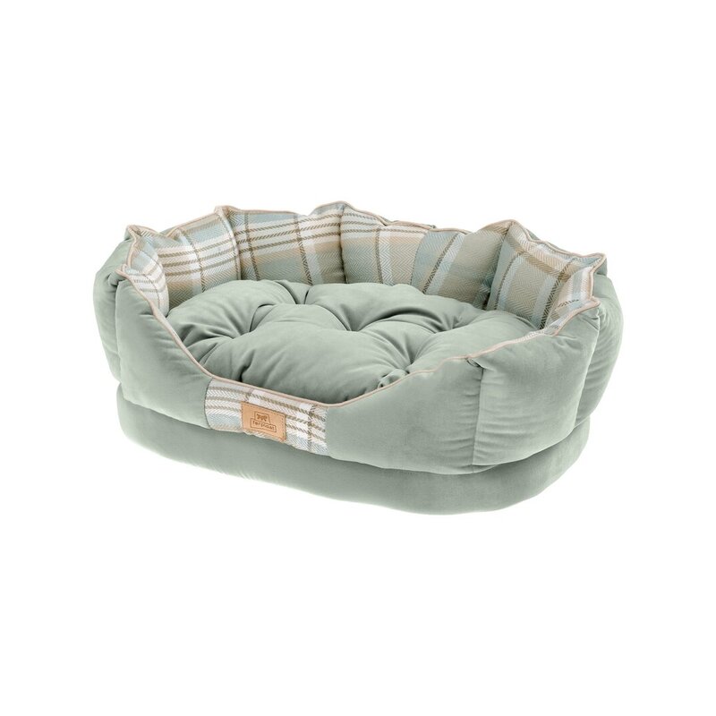 Ferplast Cama acolchada para perros y gatos CHARLES 60 Sofá con cojín para animales, Tela escocesa, Suave terciopelo, Lavable, 56 x 42 x h 20 cm, Verde