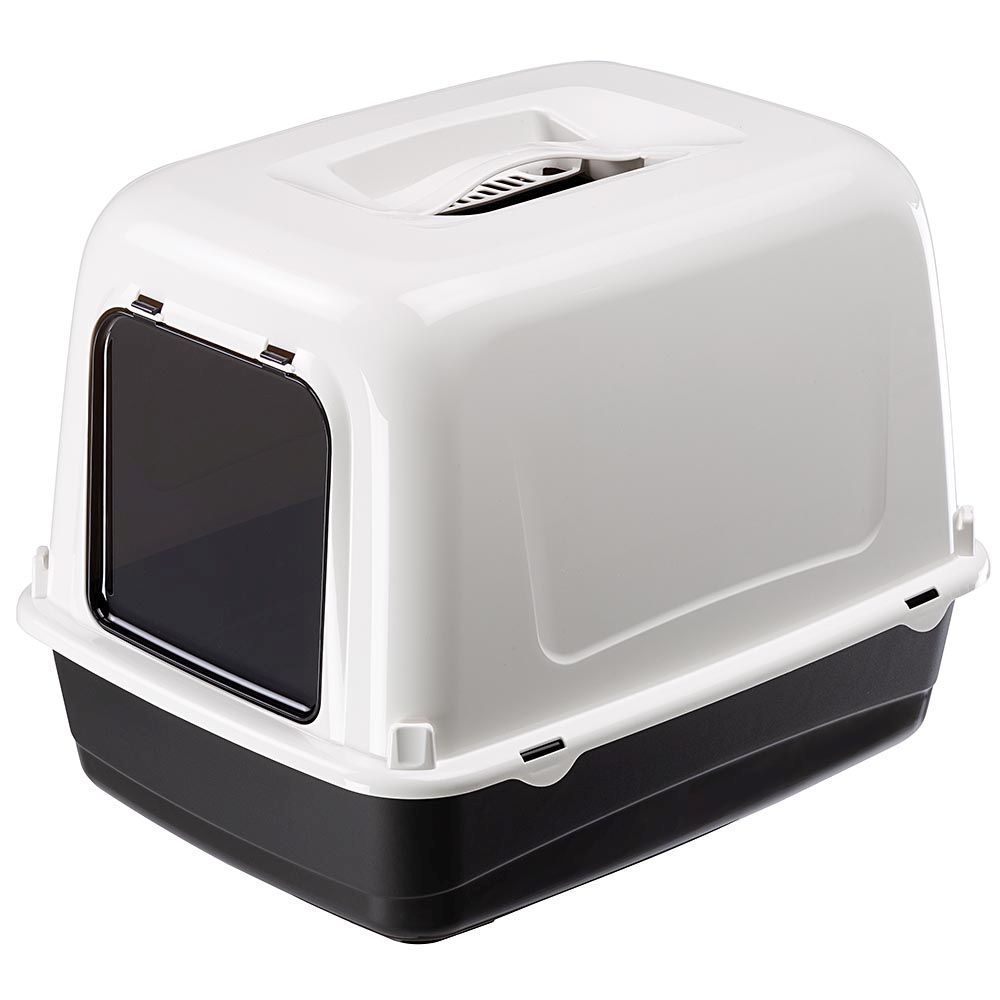 Clear Cat 10 es una caja de arena para gatos completa con una puerta basculante oscura, ideal para garantizar la privacidad. Está equipada con un asa para facilitar el movimiento y un filtro de carbón para neutralizar los malos olores. La parte inferior y la tapa se pueden separar fácilmente, lo que simplifica las operaciones de limpieza.